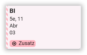 Im Beispiel ist der Zeitslot 7. Stunde von 14:00 bis 14:45 Uhr. Der Unterricht im Fach BK beginnt aber 5 Minuten später um 14:05 Uhr. Entsprechend ist zusätzlich die Zeile 14:05-14:45 für das Unterrichtselement eingeblendet.