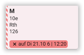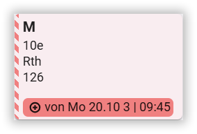 Änderungen werden im Stundenplan zur Unterscheidung von geplanten Stundenplanelementen generell durch eine schraffierte Leiste auf der linken Seite eines Stundenplanelements gekennzeichnet. Ausgenommen davon sind Mitteilungen.