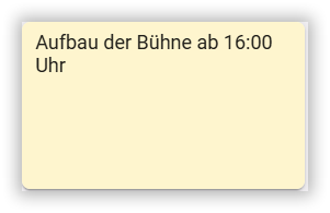 Im Fall von weiteren Informationen, wie etwa einem zum Zeitslot abweichenden Beginn, wird dies neben einer optisch versetzen Darstellung durch eine zusätzliche Zeile dargestellt.